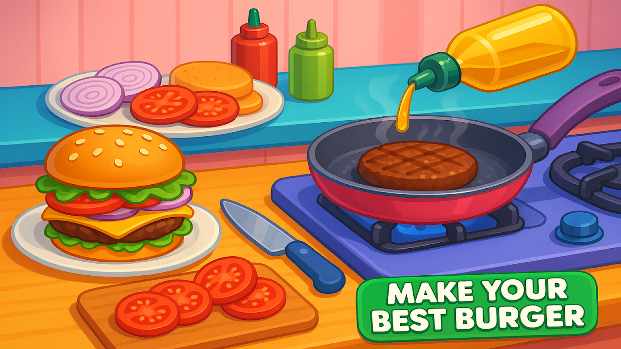 这款DIY烹饪:终极烹饪游戏拥有你所需的一切,让你以前所未有的方式享受厨房套装!女孩DIY烹饪游戏:准备好为每个人准备厨房套装烹饪游戏和美味佳肴,披萨制作游戏。从房间厨房到香蕉蛋糕🎂,这款DIY厨师游戏:汉堡制作厨师游戏让你在“快速烹饪并赢取奖励!”中探索你的技能!女孩们,在DIY烹饪游戏中成为厨师!和厨师游戏中。这是一款适合妈妈和印度女孩烹饪爱好者的美食制作游戏。使用你的鞋子大师,在汉堡制作烹饪游戏中发挥创意。尝试令人兴奋的食谱,在这款清洁和烹饪游戏、“厨房大师”游戏以及更多长模式中成为一名烹饪厨师。你准备好迎接厨房套装大厨烹饪挑战了吗🍽️?在套装烹饪中学习和体验简单易上手的烹饪大厨游戏,并探索众多有趣的食谱。