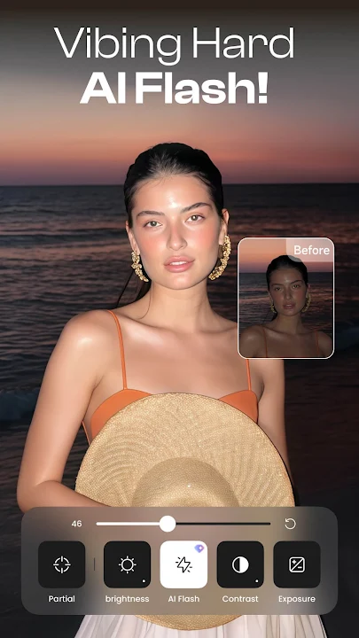 -Give your photos a retro digicam vibe or polished glow with realistic flash simulation.