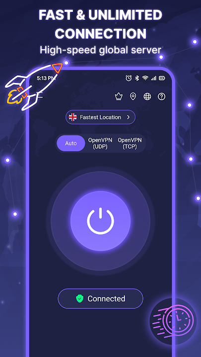 VPN - Fast Secure & Privacy is a cutting-edge VPN app designed for Android devices that provides fast, secure, and private internet connection to its users. VPN provides users with the ability to encrypt your connections, get a new IP, and enjoy ultimate online privacy. VNP provides a secure tunnel between your device and the internet, protecting your online identity. It also blocks malware during downloads, keeping your device virus-free. The app's extensive, high-performance server network helps you maintain a fast and stable connection, while traveling or working abroad.