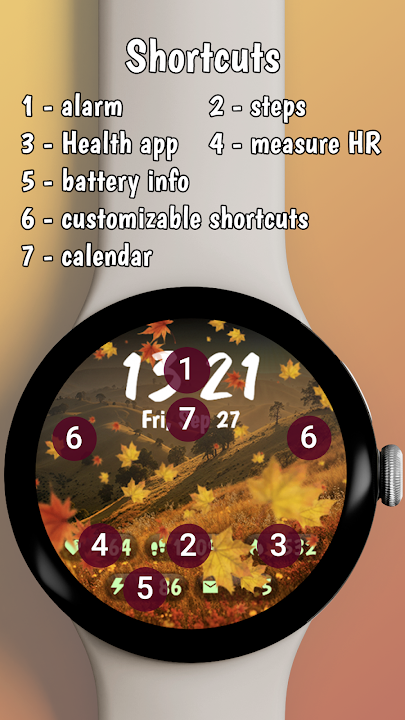 Immerse yourself in the vibrant colors and peaceful serenity of autumn, right from your Wear OS watch. With 10 stunning backgrounds showcasing tranquil forests, rolling hills, serene lakes, and golden mountain landscapes, youโll feel the crisp breeze and watch as realistic leaves gently float across your screen.
