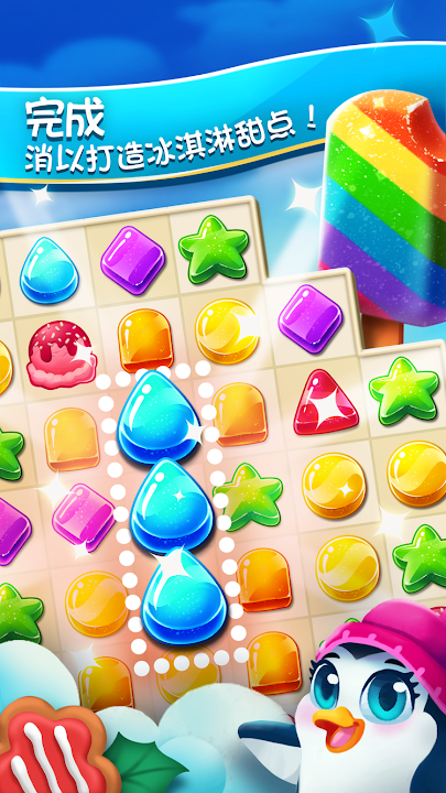 在最富有挑戰的 3 消迷宮遊戲中,匹配冰凍的冰淇淋甜點!