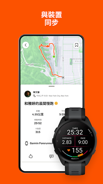 與你愛用的應用程式和裝置同步:Strava 可與數千種應用程式和裝置相容(Wear OS、Samsung、Fitbit、Garmin—你得到的應有盡有!)。Strava Wear OS app 包含了資訊方塊和錶面小工具,可以快速開啟活動。