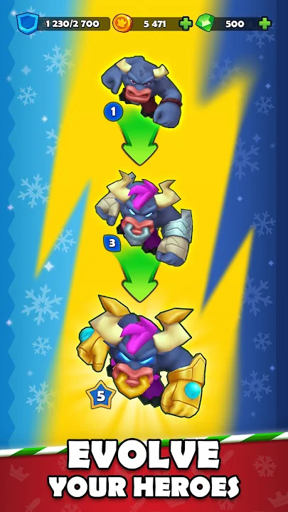 - 赢取金币和评分,提升英雄等级,称霸一个又一个竞技场。