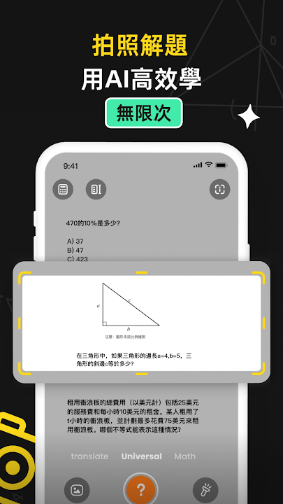 ◇ 做作業遇到不會的數學難題 ▶ 手機拍一下,立刻得到解答,高效學習