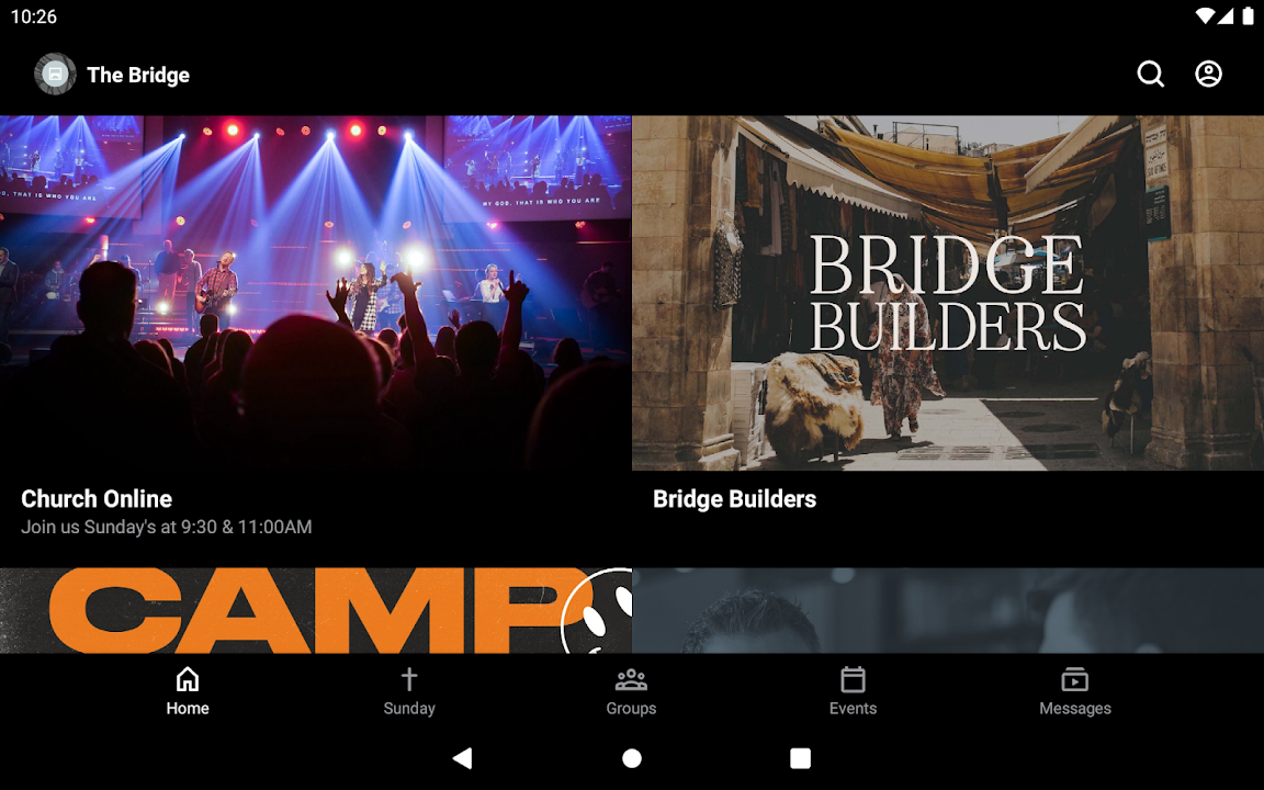 The Bridge / Mustang Campus 應用程式是使用 Subsplash 應用程式平台建立的。