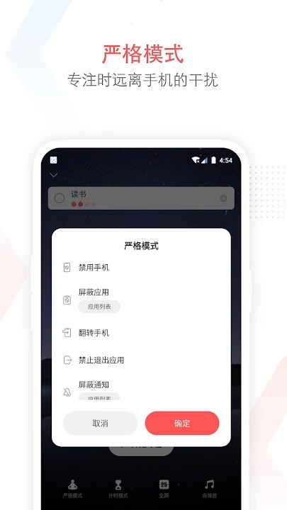 番茄时钟计时期间,屏蔽不相关APP的干扰。