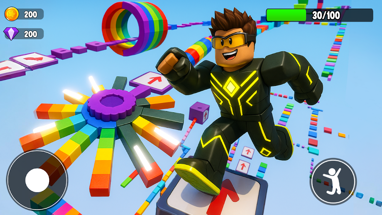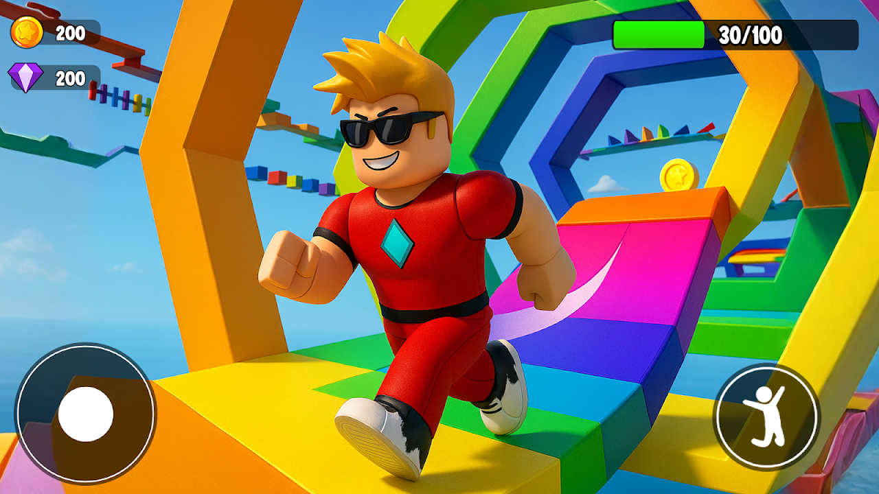 穿越充滿活力的跑酷區域,這些區域的設計靈感來自經典障礙賽道、高塔跑酷和空中跑酷挑戰。衝刺霓虹燈走道、濕滑冰路、火焰橋、酸液池和神秘的漂浮軌道。精準把握時機,躲避揮舞的斧頭、墜落的平台、崩塌的方塊和爆炸陷阱。無論你喜歡跑酷遊戲、逃脫地圖、跳躍遊戲或障礙冒險,這款遊戲都能為你帶來不間斷的動作和純粹的樂趣。