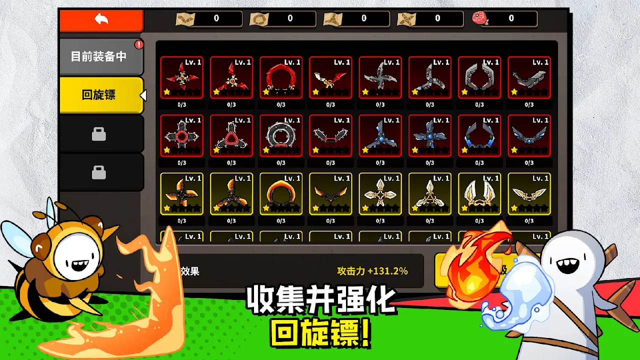 - 养成伟大的老兄, 收集及强化回旋镖吧!