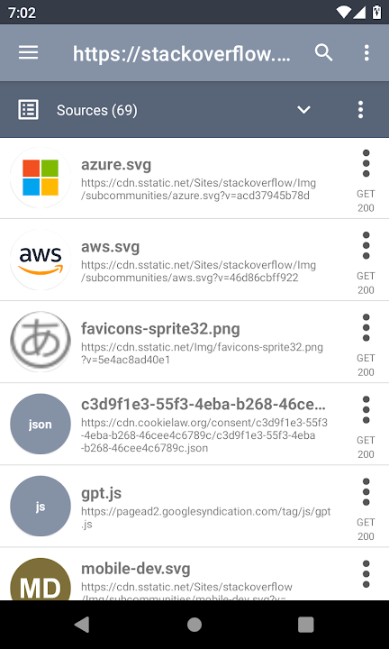 The application contains developer tools for analyzing websites. This is a simplified version of DevTools for the desktop browser.