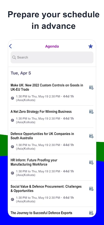 Download the Make UK Defence app to optimise your schedule and save time! Our application will allow you to optimise your participation, prepare your schedule, organise your appointments. Whether you are at a distance or physically present at events you will be able to: - Expand your business network - Participate in conferences and identify the factors influencing your markets - Network with companies in your sector - View the list of all participants and stakeholders - Identify the exhibitors and partners relevant to develop your business - Get appointments very easily.