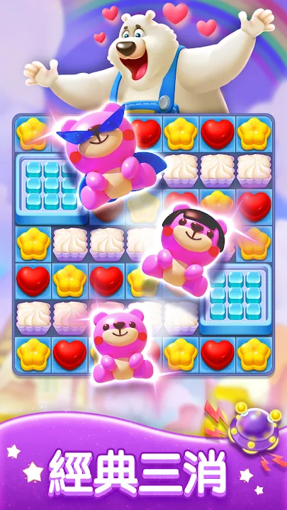 暢快的消除速度&巨爽無比的三消粉碎體驗!使用您的超強水平來解決三消謎題以幫助大熊獲得滿級星星!