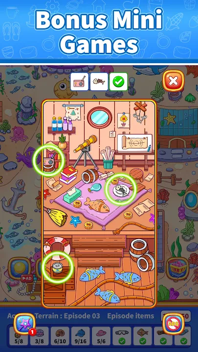 Zoom in to explore each scene in detail and tap to collect hidden items.