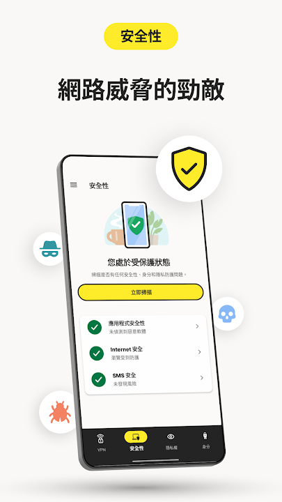 取得快速穩定的 VPN 功能,還能同時享有進階隱私、惡意軟體防護,外加家長防護網,放心守護家人與裝置的線上安全。