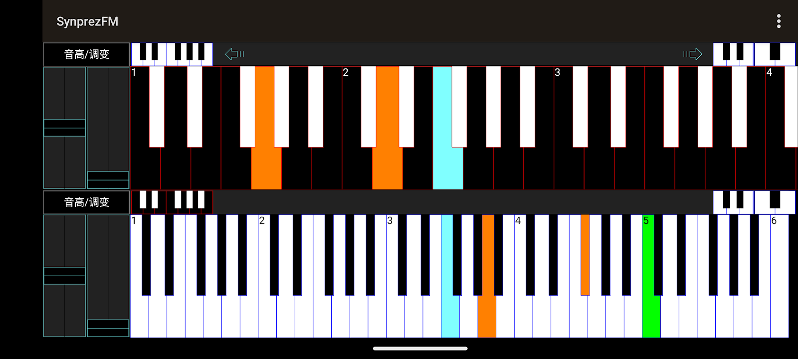 布局,即管是规模设备也能享用 2 个合成器。为了简化一般操作,复杂的功能都收录在「高级模式」下 (可在设置页引导):这包括音色编辑器及新增的微调功