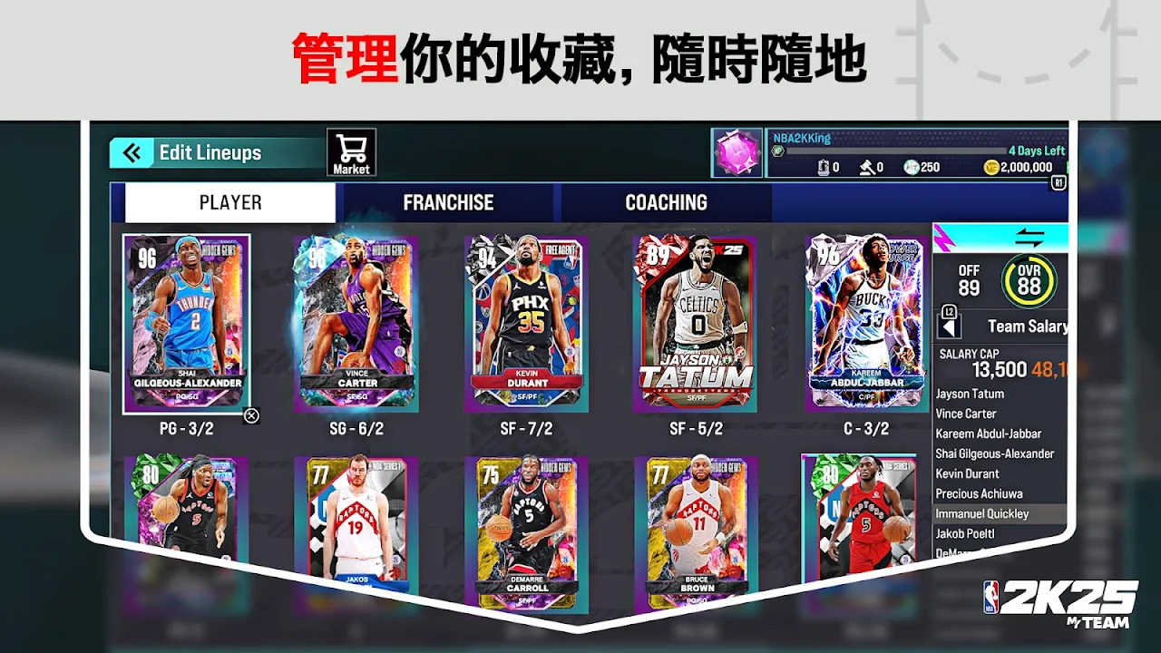 《NBA 2K25》MyTEAM應用程式讓你無論身在何處都能打造MyTEAM陣容並制訂策略。