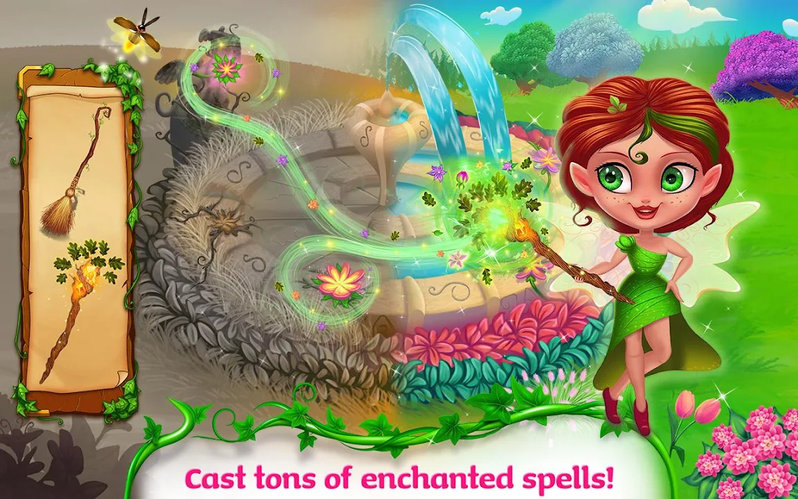 Oh no! The Evil Witch has cast a spell on Fairy Land! Now the land is dry and sad. Fairies to the rescue! Help the fairies use their magic powers to save Fairy Land! Cast spells, care for enchanted creatures, and free the land from the evil curse!