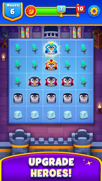 • Unique Gameplay: Experience a delightful twist on match 3 puzzles. Match items to create and upgrade heroes. Remember, every move counts in your fight to protect your kingdom!