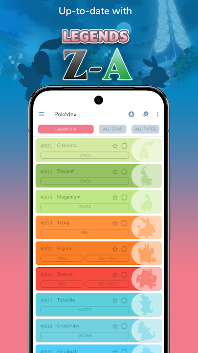 It contains detailed data on every single Pokémon, for every main series game ever released, including Legends: Z-A, Scarlet & Violet, Legends: Arceus, Brilliant Diamond & Shining Pearl, Sword & Shield (+ Expansion Pass) and Let's Go Pikachu & Eevee!