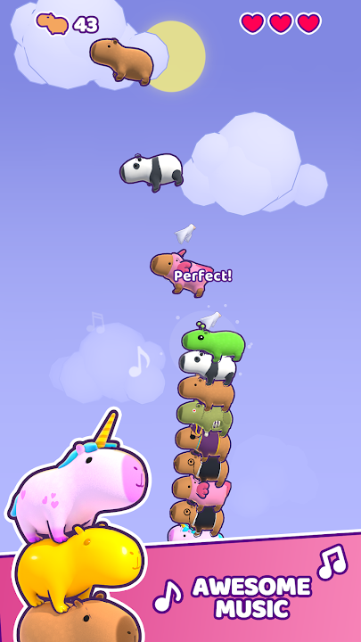 • 随着游戏进度,解锁新的宠物水豚朋友!