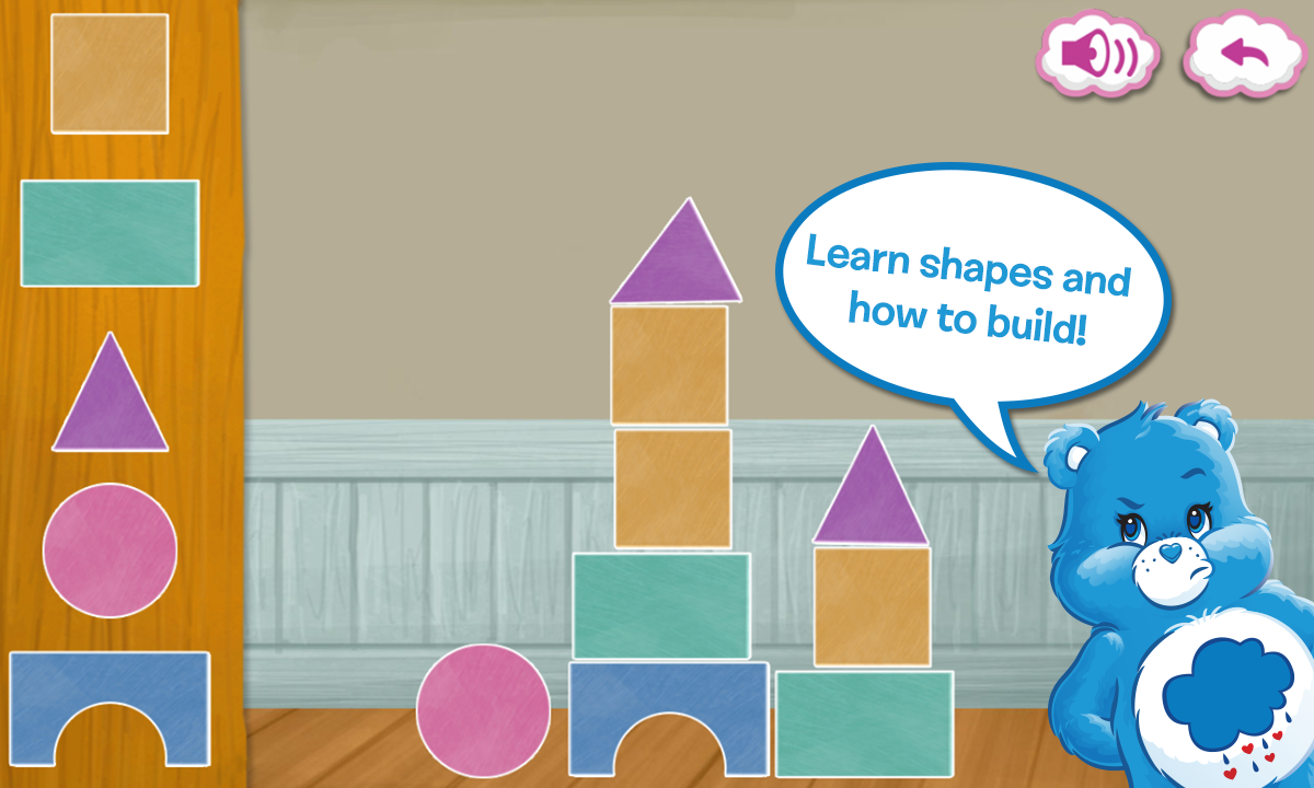 • Follow the Care Bears into houses of letters, numbers, colors, and shapes.