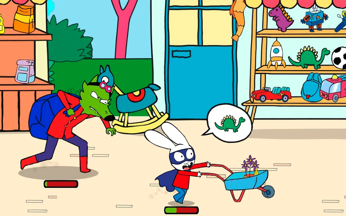 Professor Wolf doesn't give up and now he has challenged Super Simon and his friends to go shopping. Can you beat him and get all you need before he does?