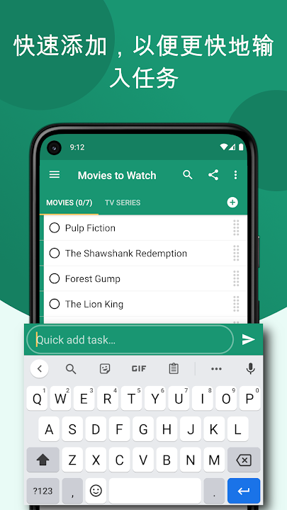 「即时记录」- 使用快速添加、通过主屏幕快捷方式、常驻通知、甚至共享菜单快速轻松地添加您想到的新任务。