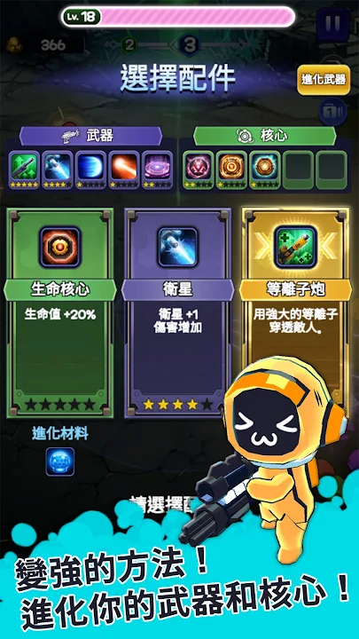 ▶ 拾取技能升級:升級武器和技能(通關第20章即可開啟)