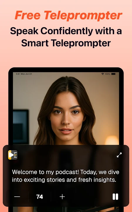 视频提词器将您的智能手机变成专业的提词器,使视频创建变得简单、无缝。它非常适合视频博主、商业专业人士、教育工作者、内容创作者和公共演讲者,确保您提供完美的视频而不会错过任何一个节拍。