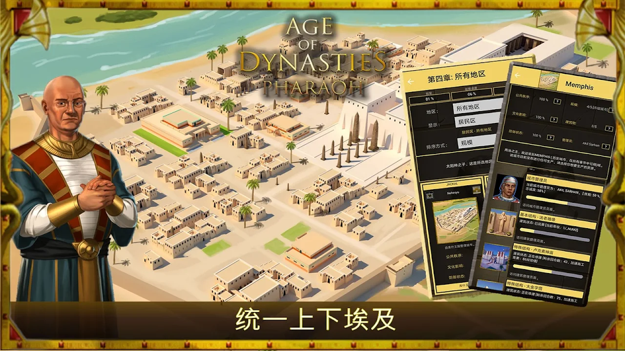 在面对其他许多法老都束手无策的挑战时(如自然灾害、建造大金字塔、内战、与其它文明的斗争、政治阴谋、政治动乱以及与神联盟),你需要做出正确的决策,以巩固王位和延续王朝。