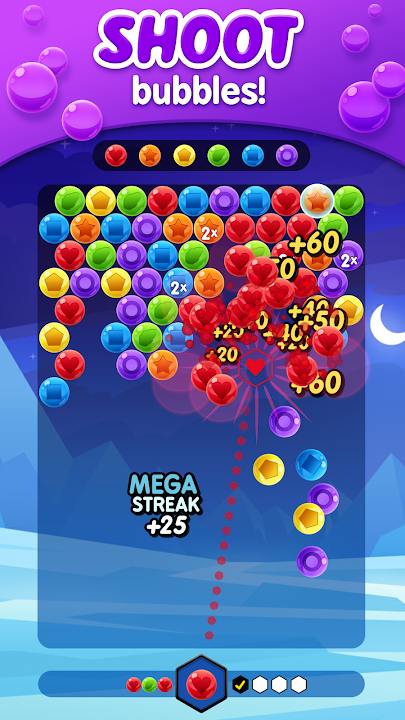 • 通過在計時器到期之前清除所有氣泡來完成比賽並獲得高分。