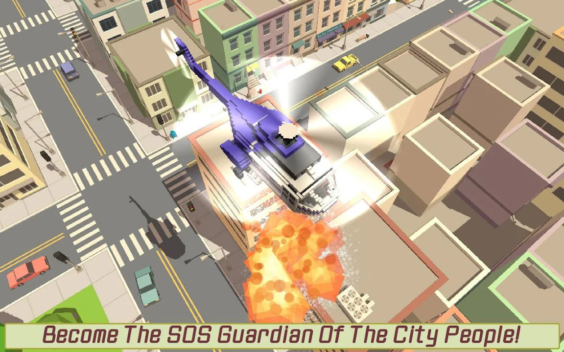 Blocky city may seem as a happy place. But even in this happy blocky town people need a guardian. Besides rescuing people from the water, you also need to help the fire department. Put out fires in the big city with your SOS helicopter. Don't forget to rescue the people out of the buildings! Unlock many blocky SOS helicopters for your collection. Choose your favorite blocky heli and complete every mission in this SOS helicopter simulator!