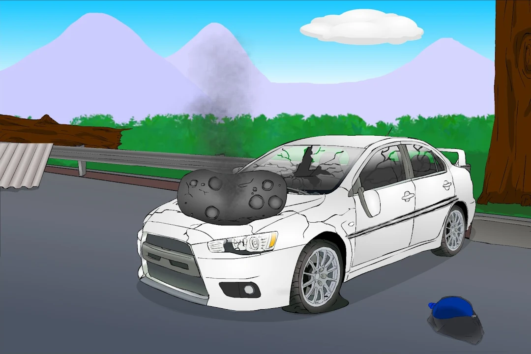 In this destroy section, grab the objects you found and start destroying the sport car. Break the windshield, side mirrors, head lights, poke a tire and scratch the car.