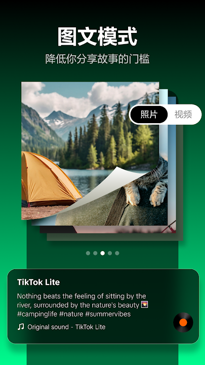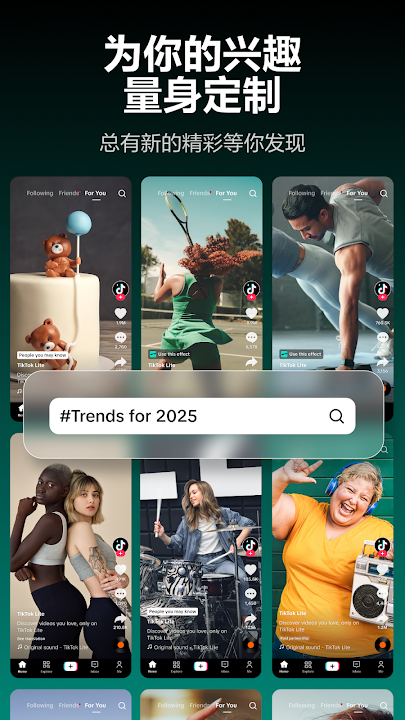 TikTok Lite,你的一站式视频神器,轻松捕捉、编辑、发现并分享精彩瞬间。这款应用跨越设备与网络界限,让音乐、视频与创意乐趣触手可及,人人皆可尽享。无论是展示个人创作,还是分享喜爱的视频,TikTok Lite 都能将你的欢乐、学识与正能量播撒至全球每一个角落。