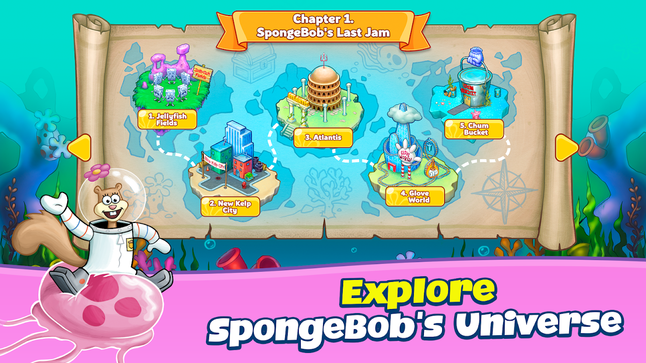 建造你自己的比基尼泳褲,並前往海綿寶寶宇宙中粉絲最喜歡的地點,如水母場、新海藻城、亞特蘭提斯等等!