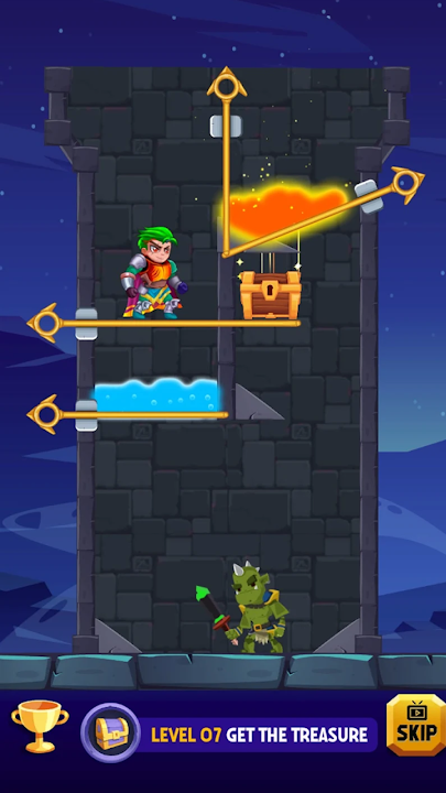 - 挑战你的大脑。尝试解开所有谜题来帮助英雄,尽可能多地使用拔出插销益智游戏,因为这些都是逻辑物理谜题。