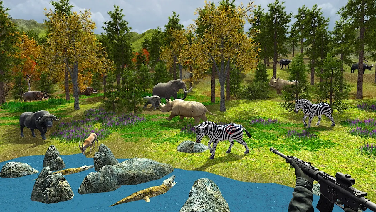 In hunting frontier safari shooting game, there are thrilling missions & a lot's of an adventurous hunt, with deadly and crazy creatures. You have to hunt many wild beasts in this safari forest like Tiger, Hyena, Cheetah, Stag, Bull, Pig, Rhino, lion, lioness. The most huntable dangerous heavy Elephant & and attack. So you have to bring with you the guns like Knife, Pistol, SMG, Shotgun, Ak47, M4, Rifle, and Sniper for surviving. Target the lion, Do headshots in the tiger, leopards & other beasts. There are some innocent animals like rabbit, Zebra, Giraffe & African buffalo. if you target that innocent animal your point deducts and the game will over so Sniper hunter safari jungle (Forest) makes you crazy. You will become a professional target wilderness, sharp hunter. Must aim precisely at the sniper to Shoot attack the wilderness of jungle (Forest). Play the perfect hunter game, use your modern deadly sniper rifles, firearm to take the exciting shot, kill the deadly beasts. The wonderful sniper weaponry Wilderness Hunting's are specially designed for delivering to the best handgun with an especially controlling zoom, unlimited ammo with powerful pierce bullets. You are equipped with many weapons like knife, pistol, SMG, Shotgun, Rifle, Ak47 gunfire. Use accurate gun from modern handguns according to the difficulty of the levels. Just prove yourself, you have the great shooting skills, show modern shooting sniper abilities to shoot down the safari jungle deadly creatures. Some amazing hazardous safari creature is spread around the forest, savage lion & lioness can attack back on you so if you want to survive, Aim the other creatures. In "Wild Animal Hunting - Frontier Safari Shooting" you have to aim every animal &if your target is missed, they can kill you.