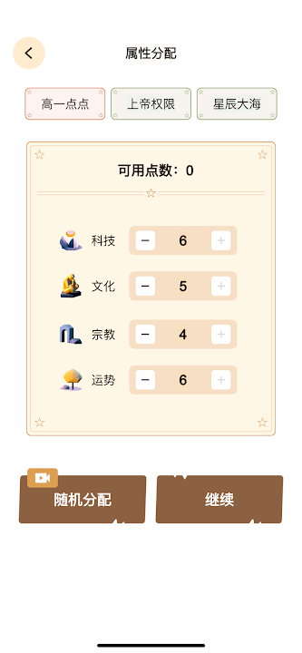 第二步:合理分配你的创世属性值。