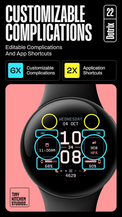- 6 Customizable Complications, 2 App Shortcuts: Includes progress bars, text styles, app shortcuts, and more to tailor the watch face functionality and overall look.