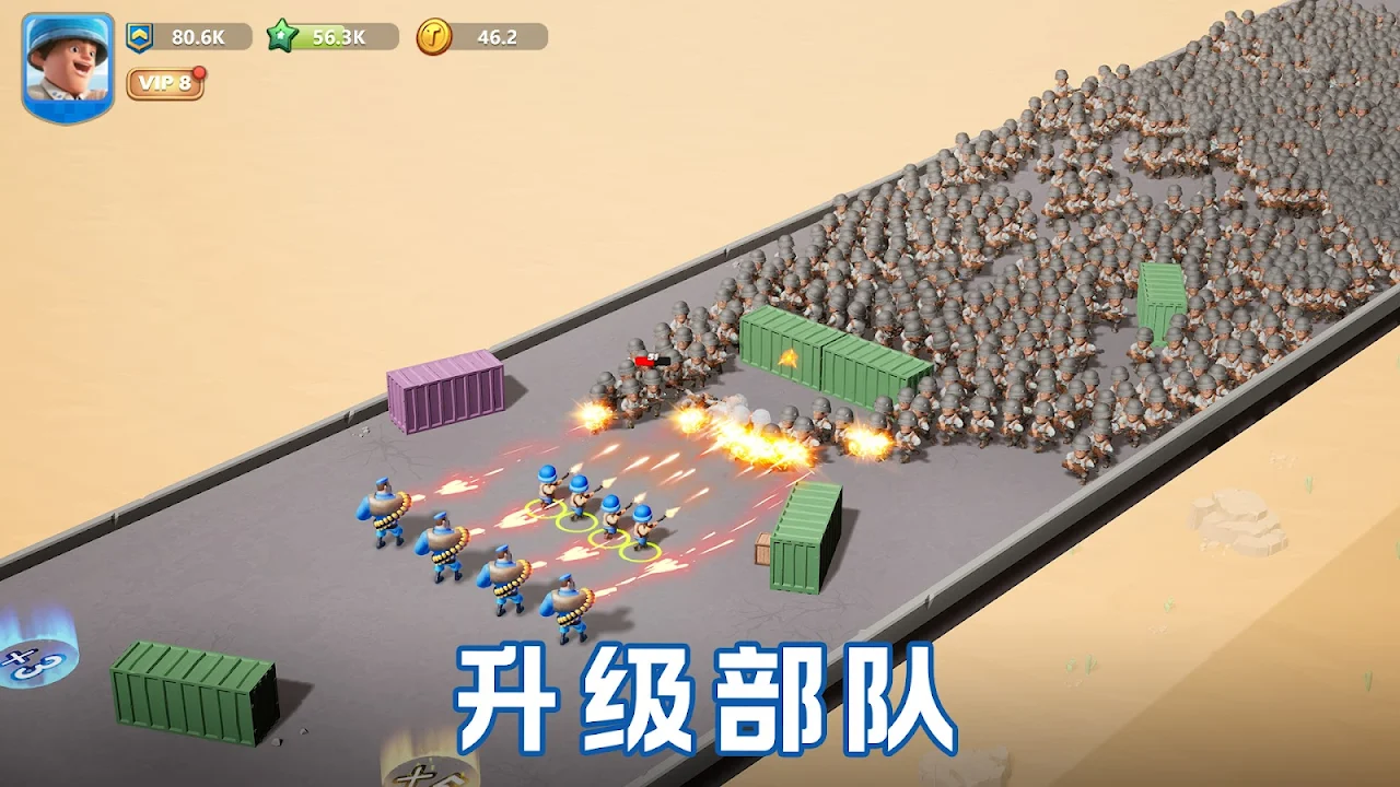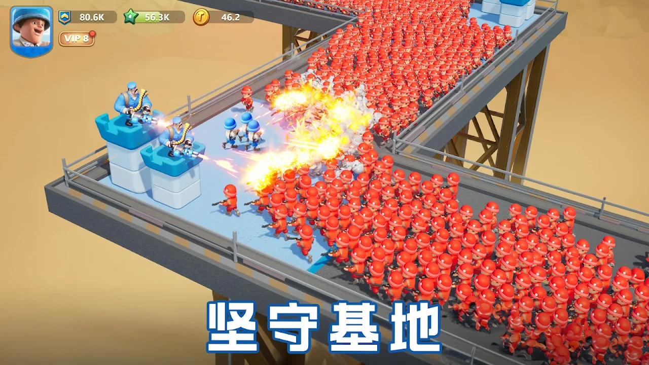 不论是建筑还是士兵单位,只要合成就升级!有别以往的升级方式减少大量等待时间,拥有战力瞬间上升的快感!