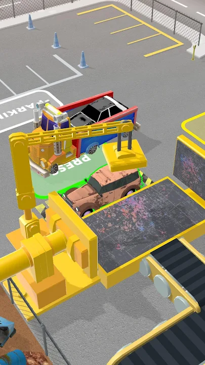 在停車場,對於汽車的處理有兩種選擇:要么有人來支付罰款(當場留下錢),要么時間到了,需要將它們帶到回收中心。如果汽車被送到回收中心,它會被壓力機壓碎,您會收到錢,可以用來升級您的拖車。