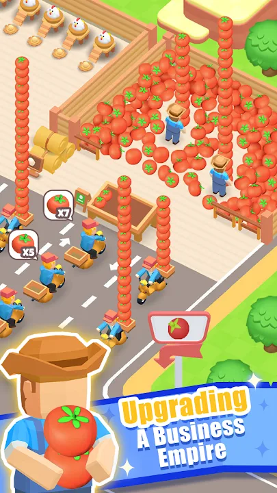 Click, tap, and upgrade your buildings to earn cash. Hire workers to help manage your business. Tend your farmer's team and sell your goods to the farmer's market for profit!