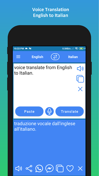✓ Using inbuilt voice recognition technology, you can type your text using your voice and then translate the text. This convenient feature allows you to translate regular conversations. You can translate your English voice to Italian and Italian voice to English.
