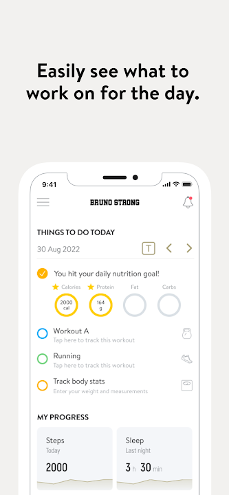With the Bruno Strong App, you will have access to workout programs designed specifically to help you reach your fitness and health goals! You can follow & track your workouts, your nutrition, your lifestyle habits, measurements and results–all with the help of your coach.
