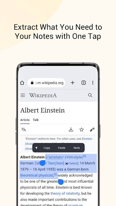- In Chrome, you can easily extract what you want by copying the text then tapping the Notes button.