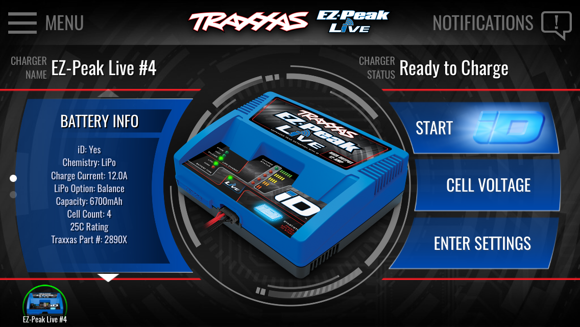 該於Traxxas ID系統是你的身份證配備電池充電的最簡單,最有效的方法。當你一個id配備的電池連接到您的EZ-峰值活動充電器,電池的信息將被自動應用程序屏幕上顯示。該應用程序讓你瞬間驗證與明確和準確的讀出你的電池的狀態和個人的鋰聚合物電池的電壓。使用充電器的自動設置或以高清晰度圖形界面易於使用的滑塊和按鈕,配置自己。