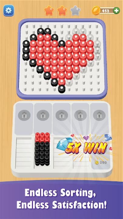 Beads Sort & Craft is here to challenge your day! Tap and sort identical bead colors that will be showed on the bottom slot & complete the picture. Solve the puzzles, win each level and unlock new stylish and exiting pictures!