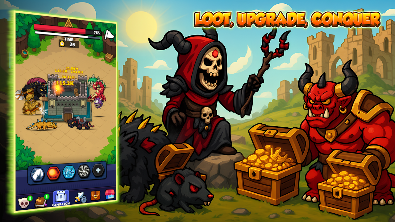 ✅Summon & Upgrade: Summon unique monsters and upgrade their abilities to unleash devastating attacks on castles.
