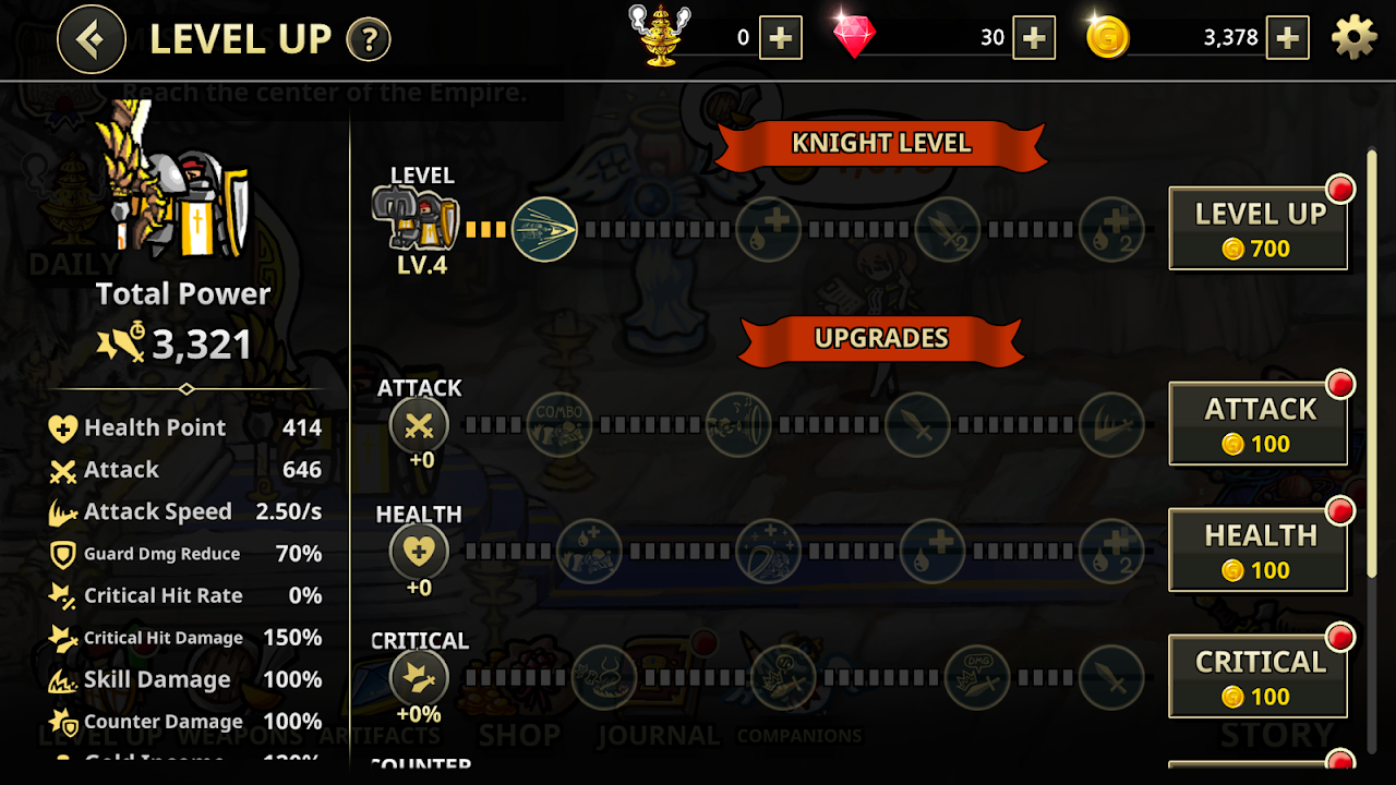 - Knight Growth: Growth system allows Knight to develop to match the player’s style.