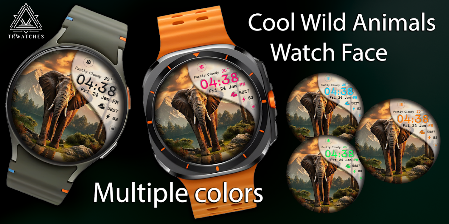 Step into the heart of nature with the Cool Wild Animals Watch Face, where the beauty of wildlife meets cutting-edge smartwatch features. With 8 stunning animal backgrounds, customizable text colors, and an elegant yet adventurous design, your smartwatch will never look the same again. Whether you prefer a 12-hour AM/PM or 24-hour clock format, this watch face brings the wilderness right to your wrist—without the mosquito bites!