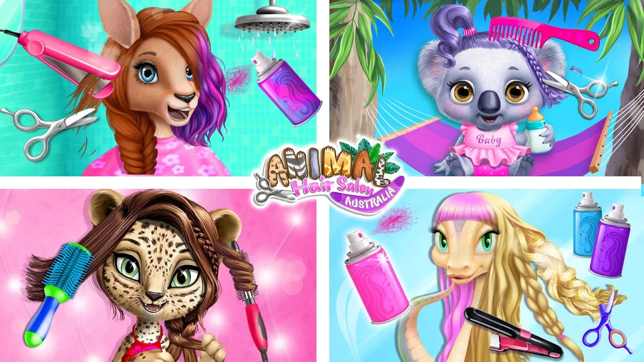 疯狂动物美容院来到了阳光明媚的澳大利亚!挑选您的美发工具,准备好迎接全新的虚拟宠物大变身和动物美容冒险之旅!认识可爱的宠物美容院客户 - 豹子艾米、小考拉玛吉、袋鼠悉尼和蛇水晶。